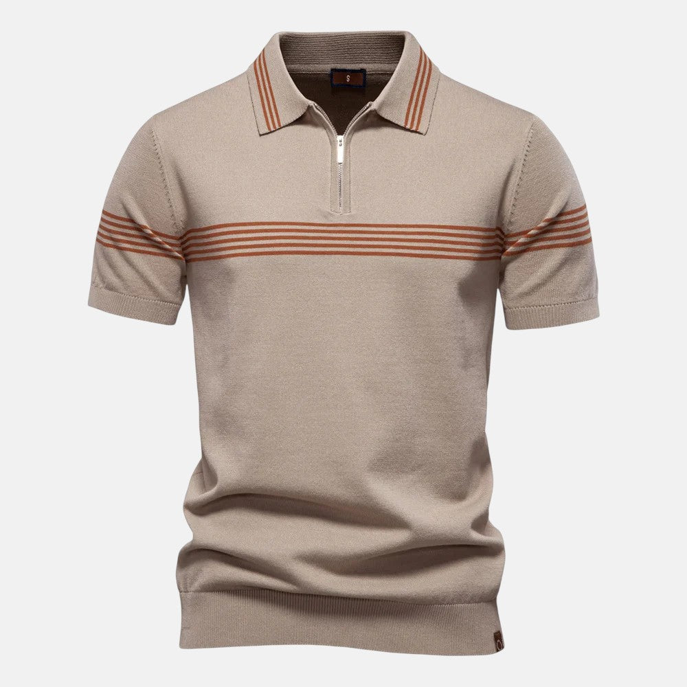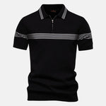 Refina tu estilo con nuestro polo con Cremallera y Raya en el pecho . Mejora tu armario con este polo de manga corta que combina un diseño atrevido con un corte entallado moderno .