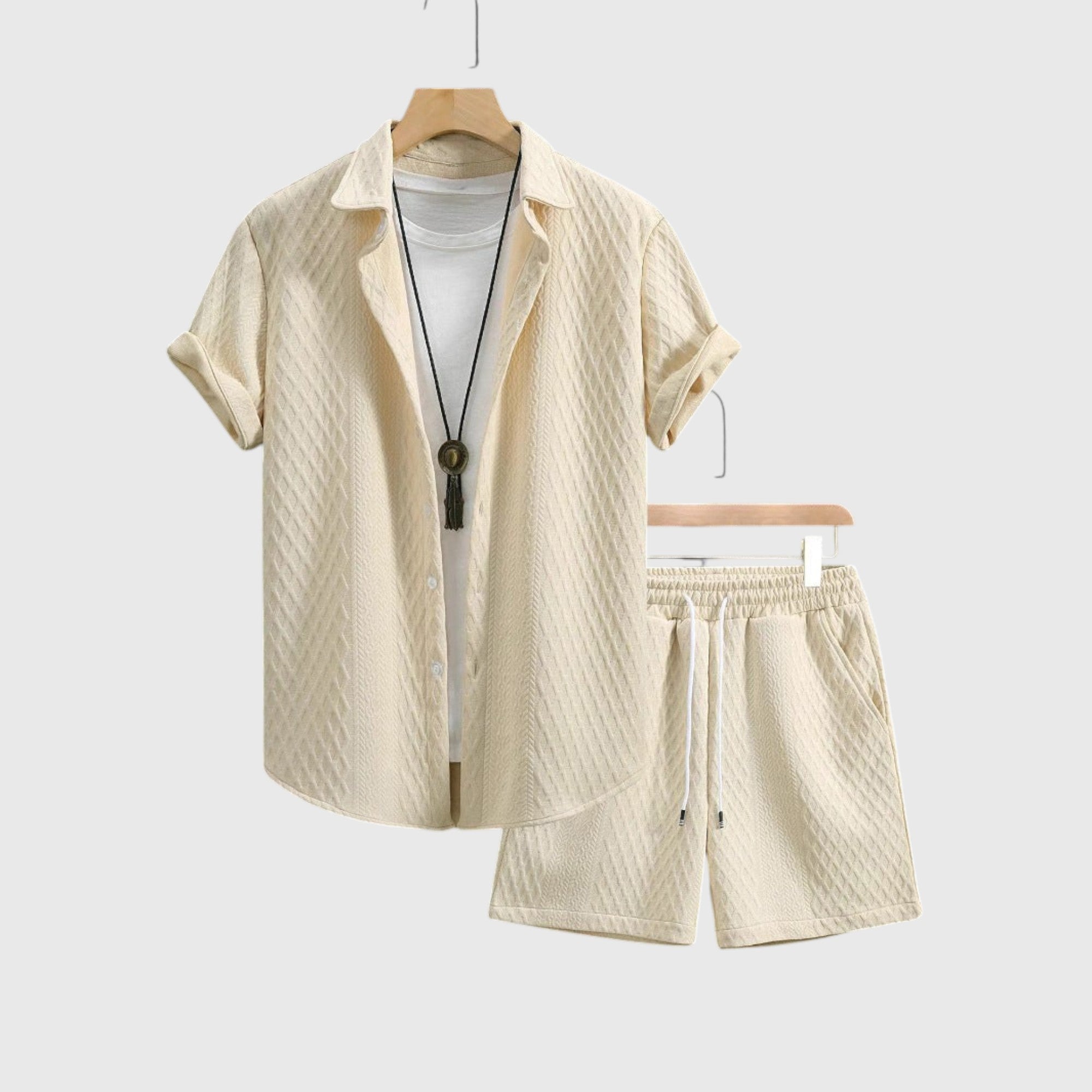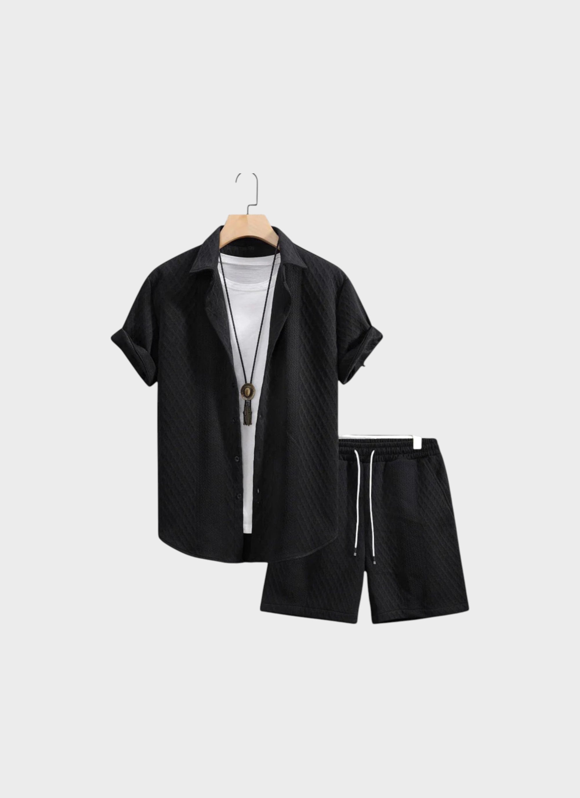 El conjunto Enrique está diseñado para hombres que valoran la relajación sin renunciar al estilo. Fabricado con tela de primera calidad , ofrece una sensación de ligereza y transpirabilidad, perfecto para días de playa, vacaciones o tardes relajadas en el armario.
