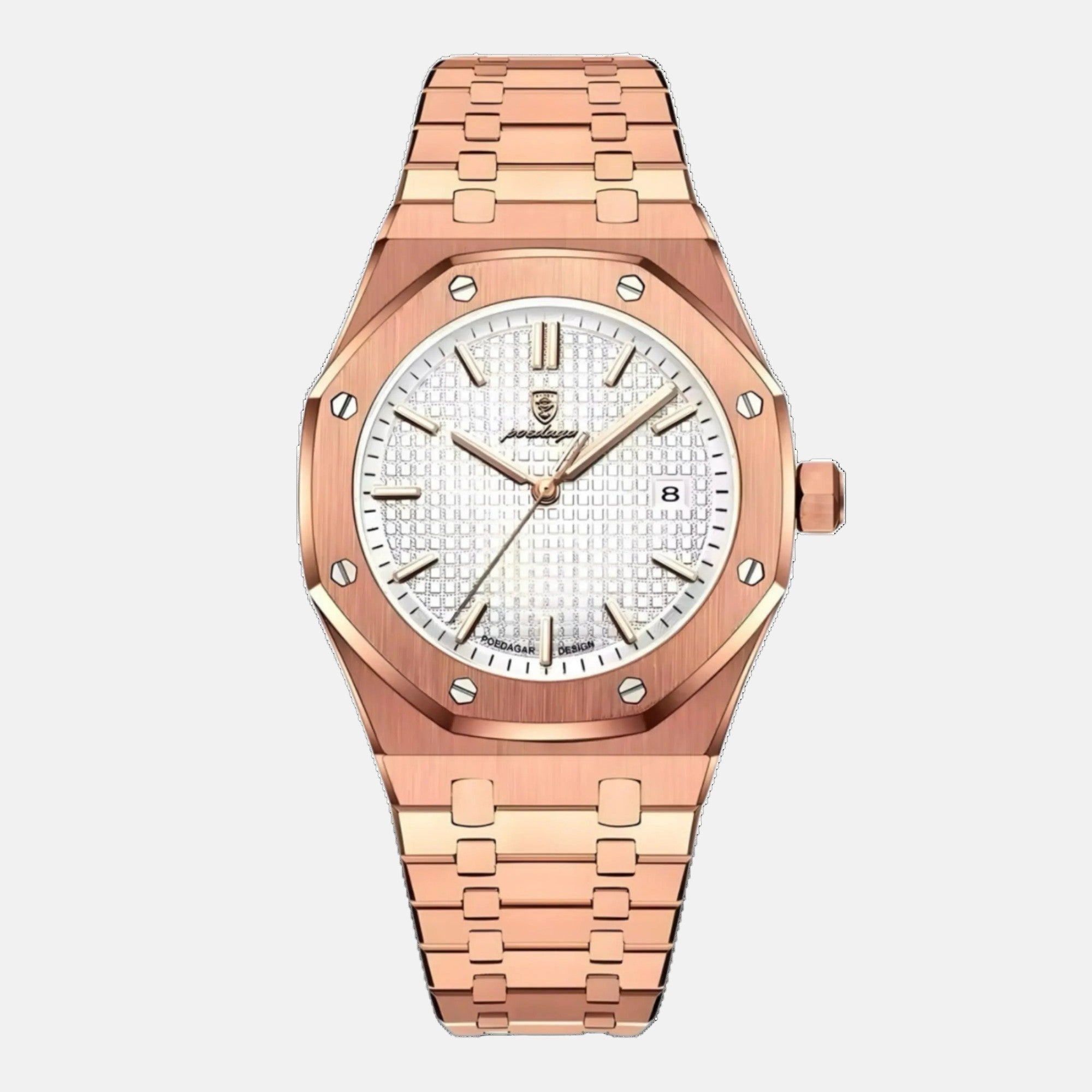Poedagar | Esencia es un reloj diseñado para ofrecer precisión, durabilidad y elegancia para el día a día. Con un movimiento de cuarzo italiano que garantiza una precisión fiable, este reloj se adapta a tu estilo de vida ajetreado y te ofrece un look atemporal y refinado.