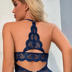 ¡Descubre tu feminidad en una versión extraordinaria! Este elegante body ajustado en un intenso color azul marino deslumbra con su diseño artístico y su seductor corte abierto. Los sensuales cortes, el delicado lazo para atar al cuello y el encantador lazo hacen de esta lencería la compañera ideal para una velada romántica o una ocasión especial.