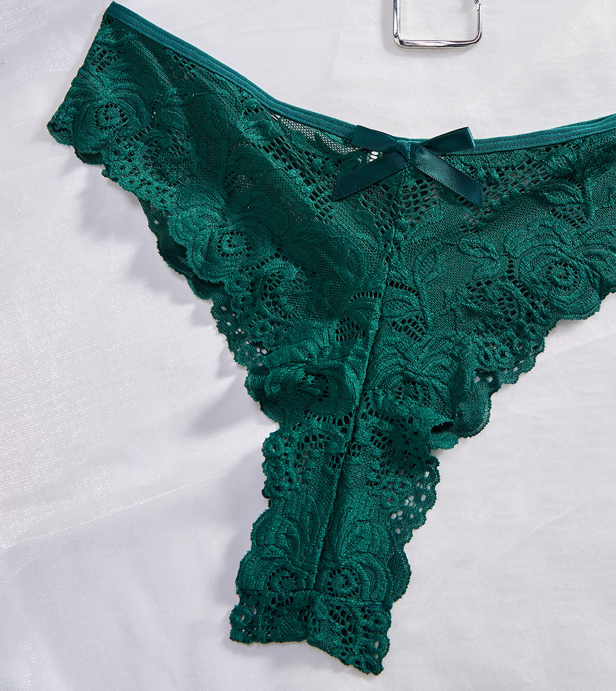 Delicado conjunto de lencería con diseño abierto.