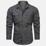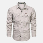 Prepárate para cualquier aventura con nuestra camisa de manga larga para hombre . Con un clásico cierre de botones y bolsillos en el pecho , combina un estilo resistente con la practicidad del día a día .