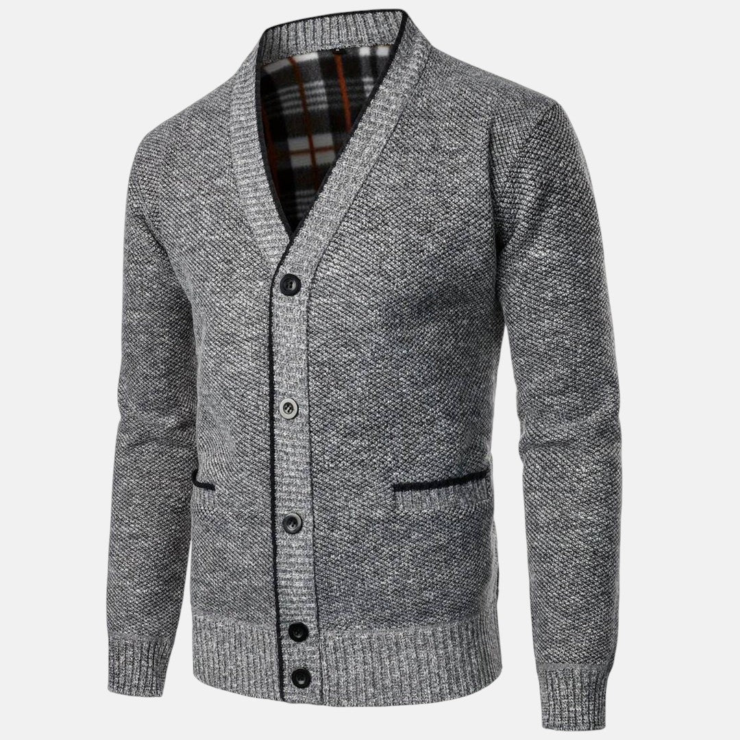 Experimente la calidez clásica de un punto de distinción. Este cárdigan con botones en forma de V para hombre cuenta con un forro de cuatro piezas y bolsillos laterales, fusionando la refinada artesanía con una silueta contemporánea, ideal para ir del taller al fin de semana con elegancia.