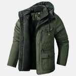 Chaqueta de invierno para hombre, elegante y práctica, diseñada para acompañar la temporada de frío con un estilo sobrio y sofisticado. Su capucha y suave forro interior ofrecen aislamiento sin sacrificar la comodidad, mientras que su confección de alta calidad garantiza durabilidad y un acabado impecable.