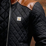 Ramiro - Chaqueta acolchada negra con hombros de cuero
